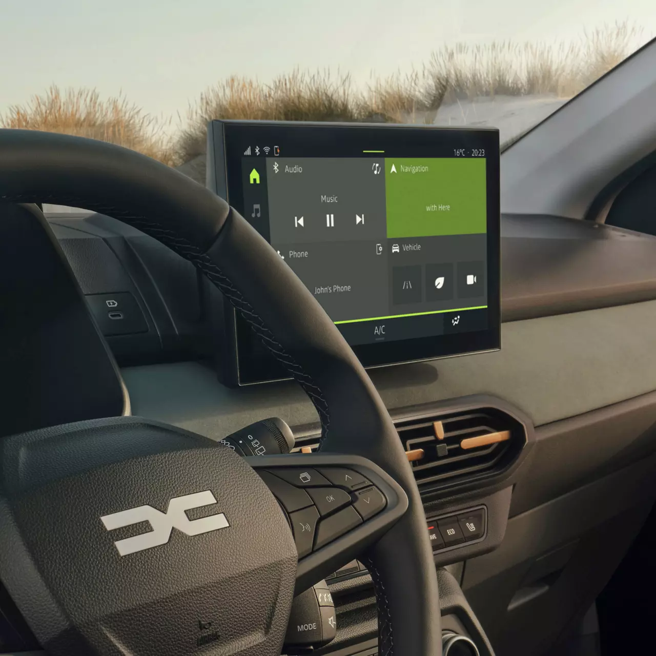 El Jogger incorpora una pantalla multimedia de 10”, un cuadro de instrumentos digital de 7” y navegación conectada con mapas actualizados e información del tráfico en tiempo real. Además, incluye cargador inalámbrico integrado para mantener tu smartphone siempre listo.